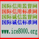 欢迎你的光临,为防假冒请认准域名:www.ice8000.org,我们的宗旨与使命:促进社会诚信、降低交易成本、增进人类福祉,促进人类的诚信与进步。本网络媒体是世界信用组织(WCO)、国际道德法院[IMC]、世界诚信组织(WIO)、国际信用争议仲裁委员会[ICDAC]等四个单位主办的网络媒体。本媒体的名称是国际信用监督网,也可称为国际信用标准网、国际诚信监督网、国际诚信标准网。ICE8000标准是检验一个单位或个人是否真正诚信的标准。